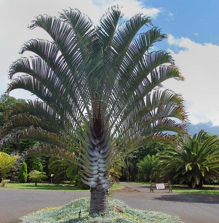 The Triangle Palm (Dypsis decaryi) is a striking ornamental palm native to Madagascar, admired for its unique triangular growth pattern and elegant blue-green fronds.