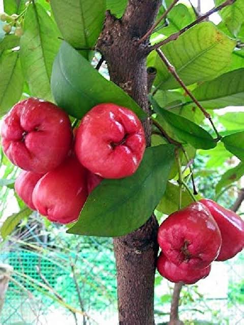 The Red Water apple , also called Jambu, Rose Apple, or Paneer Fruit, is a fast-growing tropical fruit tree popular for its crunchy, mildly sweet, and water-rich fruits. Its bell-shaped fruits are often pale pink, red, or light green and are widely consumed fresh or in salads during summer.
